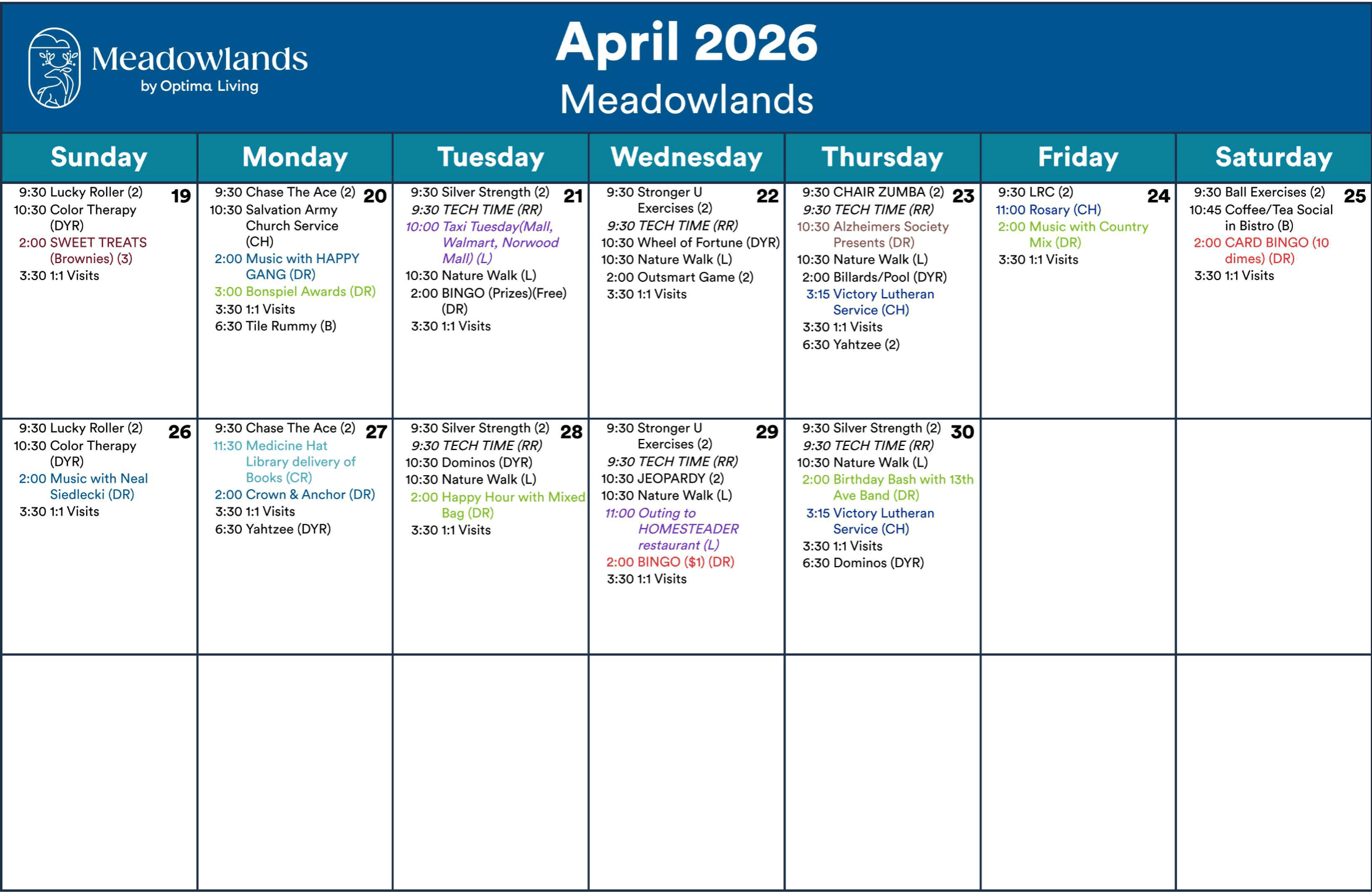 Events subject to change. Not all events open to the public. Call for details.